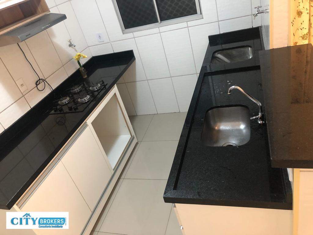 São 2 quartos, 1 sala, 1 banheiro e área de serviço, com 1 vaga de garagem. Com infraestrutura completa: TV a cabo, internet, água individual, alarme, interfone, portão eletrônico, portaria 24h e segurança 24h.