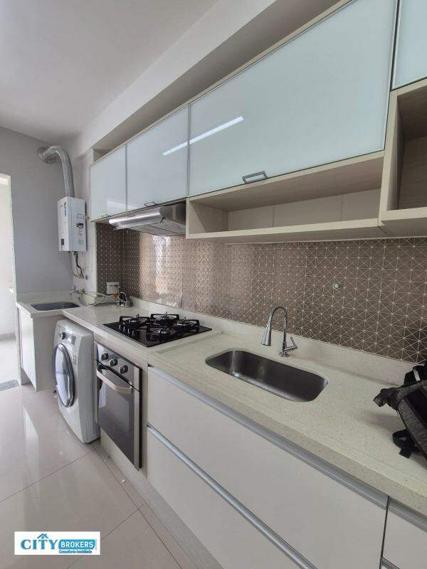 Área interna de 72 m² com infraestrutura completa: armários em quartos, cozinha e banheiro, TV a cabo, internet, água individual, alarme, interfone, portão eletrônico e portaria 24h. Contas com área de serviço e circuito de TV, gás canalizado.