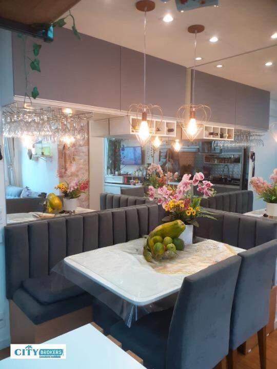 Apartamento 34m², 2 dormitórios, lavabo com gabinete, 1 banheiro com box de vidro ,1 sala para dois ambientes com um dos lados completamente planejado, incluindo um sofisticado Canto Alemão otimizando a área de refeições., cozinha integrada à sala e com armários planejados, 1 vaga de moto, área de serviço.