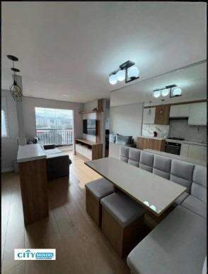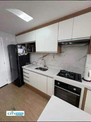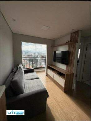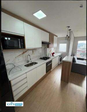 Apartamento 43m², 2 dormitórios, 1 banheiro, sala, cozinha, 1 vaga de garagem, varanda gourmet, área de serviço.