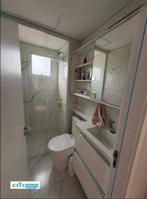 - Banheiro de Luxo: Equipado com box de vidro e gabinete planejado com balcão em quartzo e paredes revestidas em porcelanato.