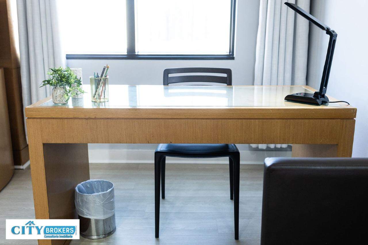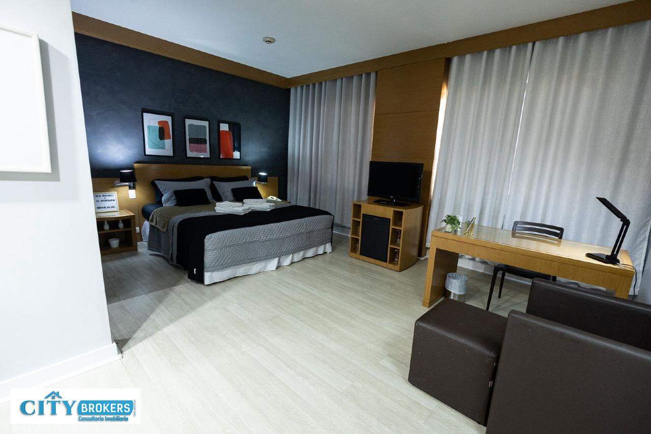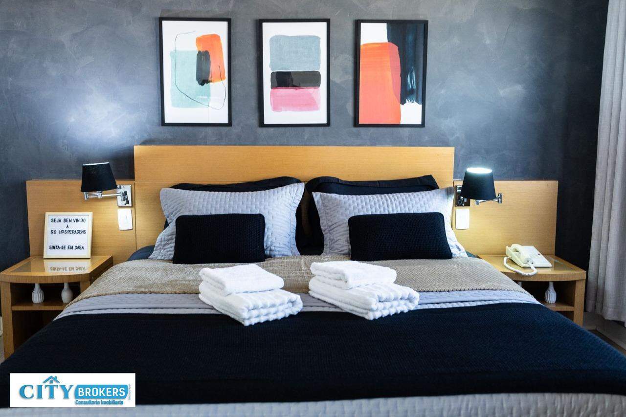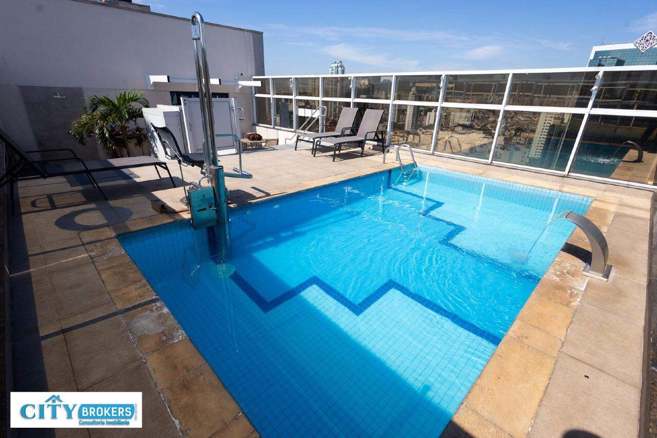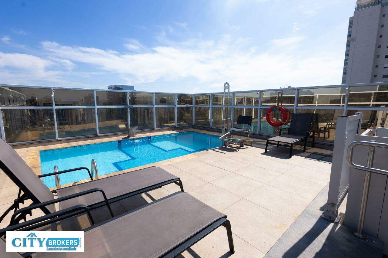 O imóvel é mobiliado e conta com ar-condicionado, armário no quarto, box no banheiro e escritório. Infraestrutura completa: portaria 24h, segurança 24h, academia, playground, possui piscina externa, sauna seca e uma academia de ginástica.