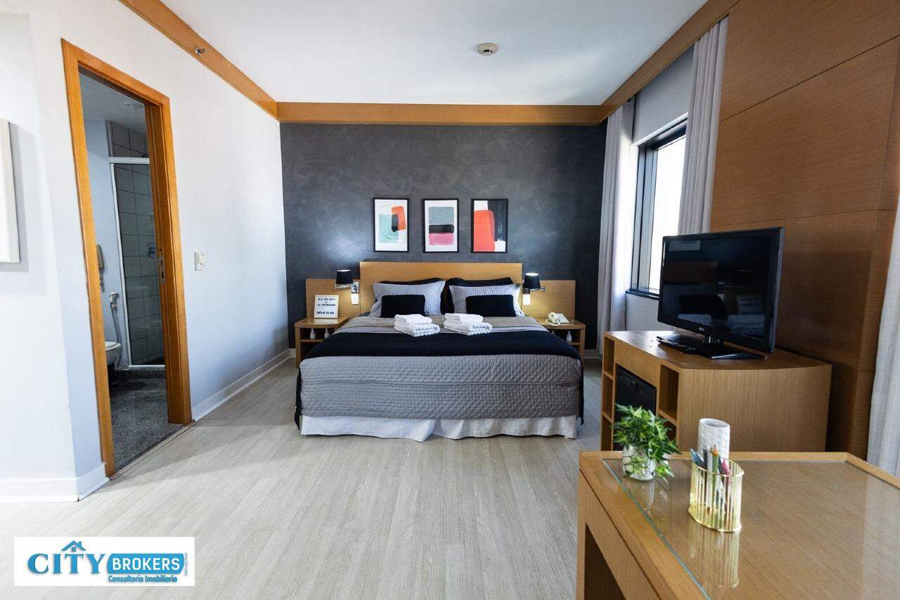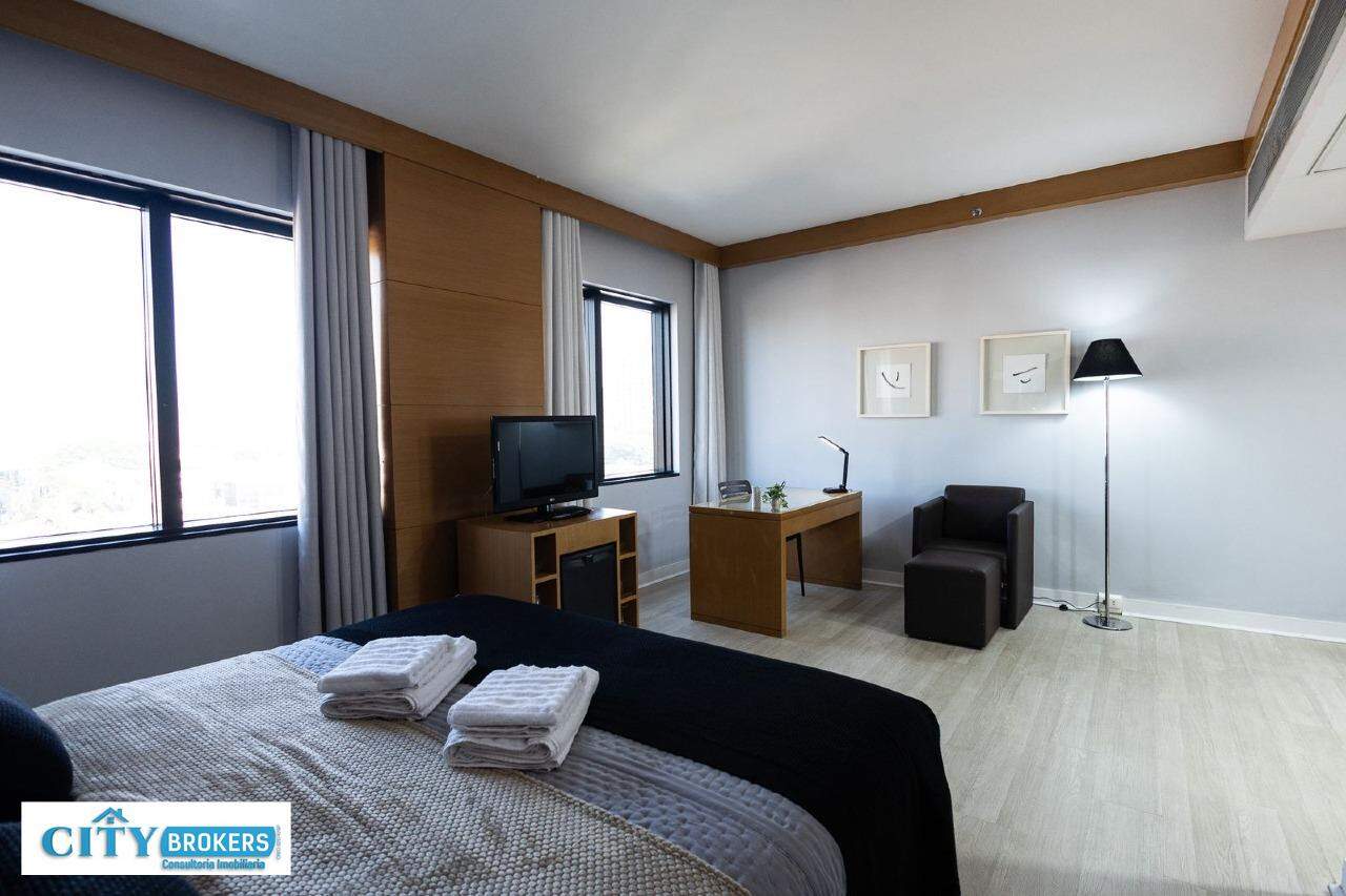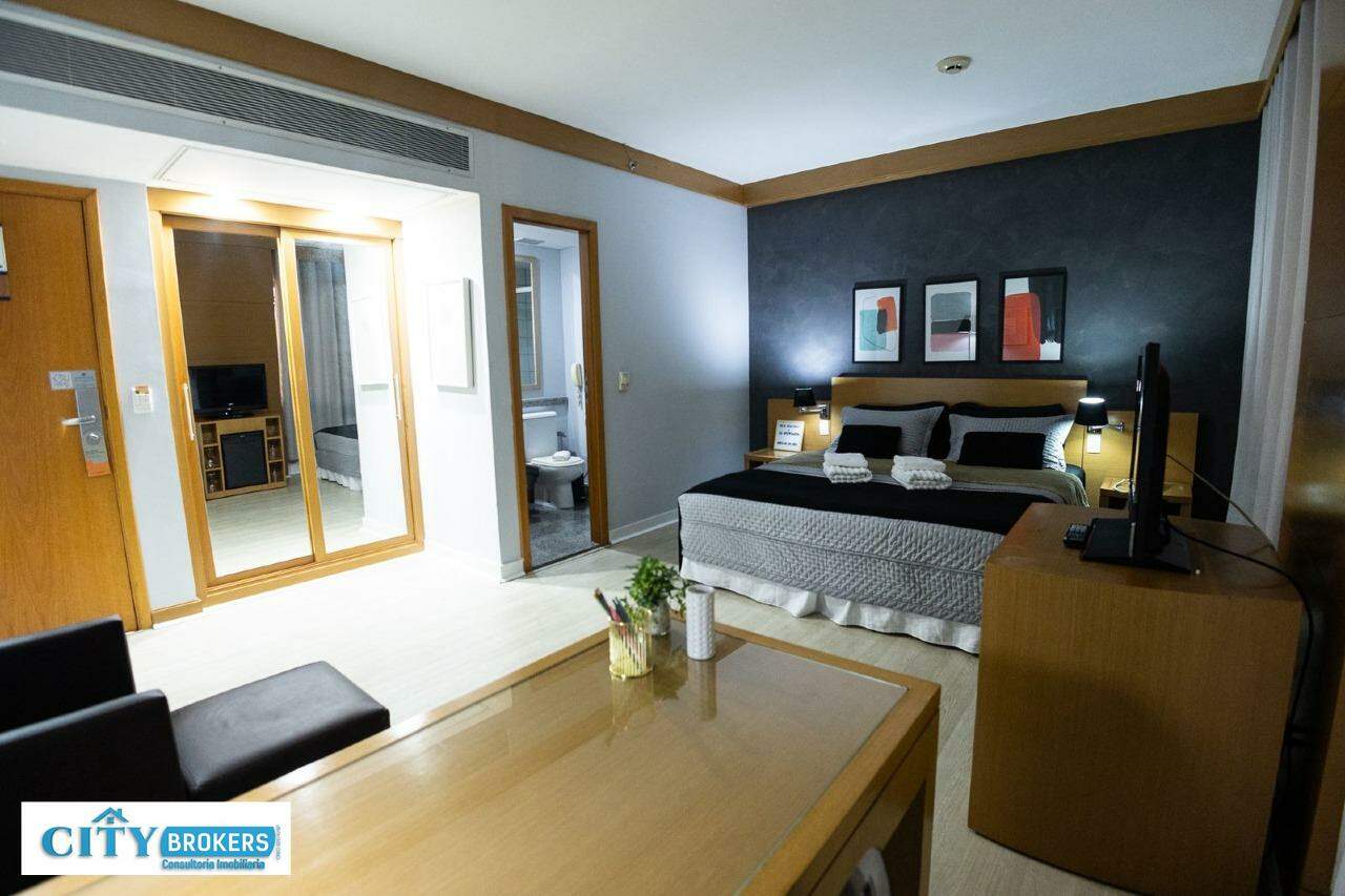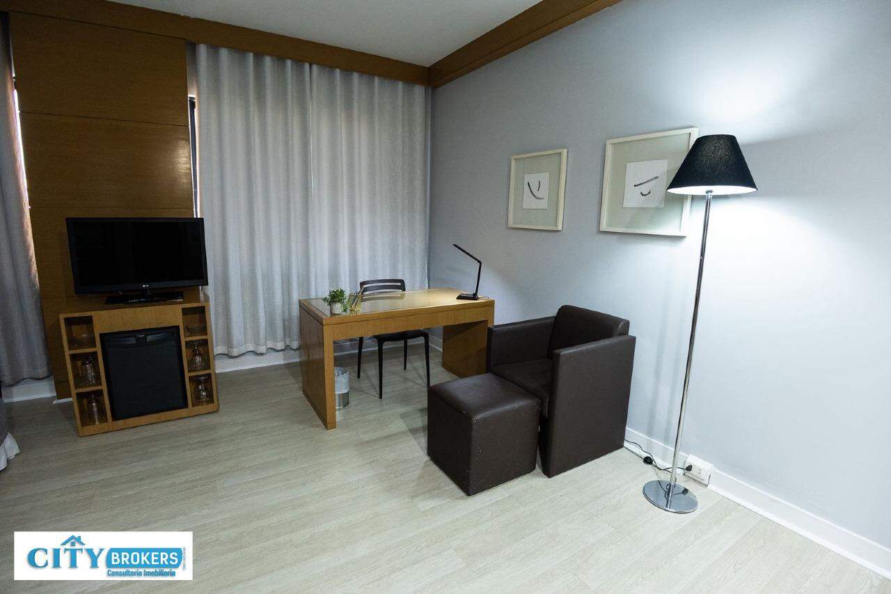 O imóvel é mobiliado e conta com ar-condicionado, armário no quarto, box no banheiro e escritório. Infraestrutura completa: portaria 24h, segurança 24h, academia, playground, possui piscina externa, sauna seca e uma academia de ginástica.