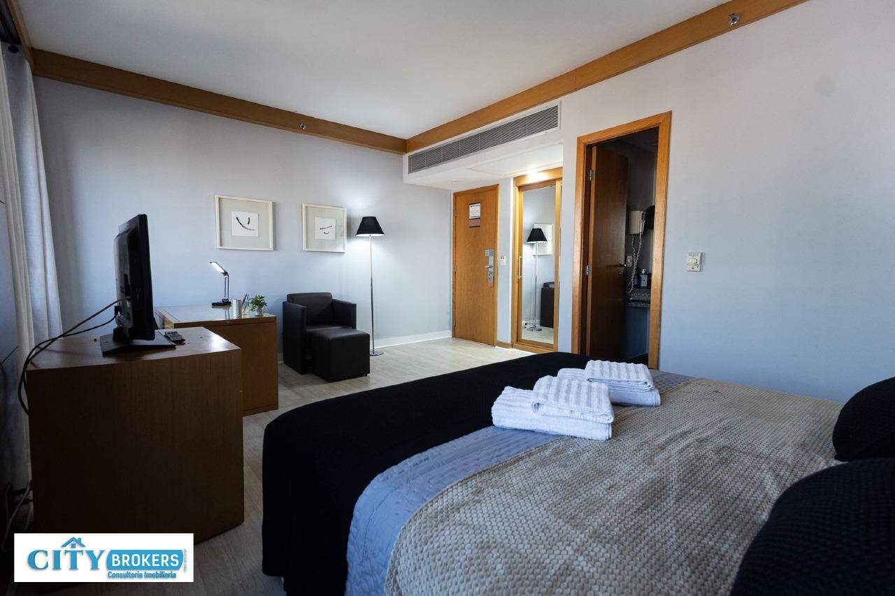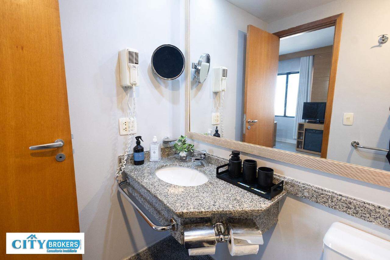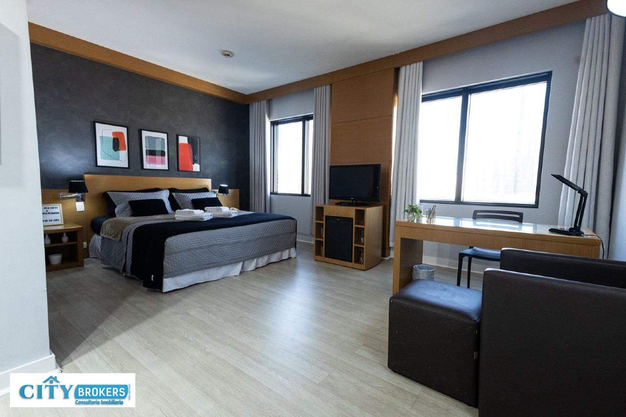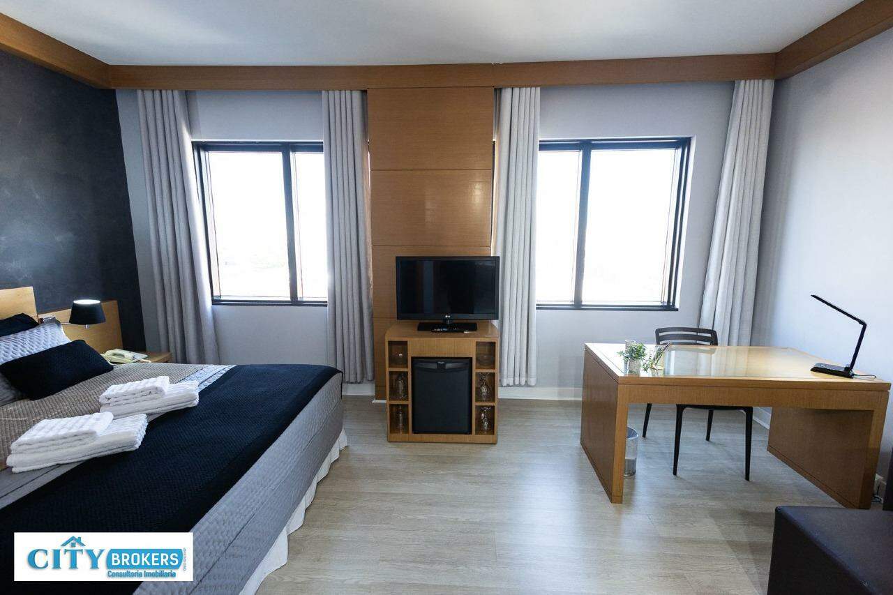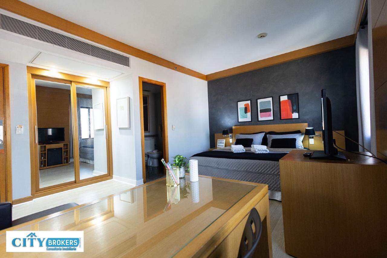 O imóvel é mobiliado e conta com ar-condicionado, armário no quarto, box no banheiro e escritório. Infraestrutura completa: portaria 24h, segurança 24h, academia, playground, possui piscina externa, sauna seca e uma academia de ginástica.